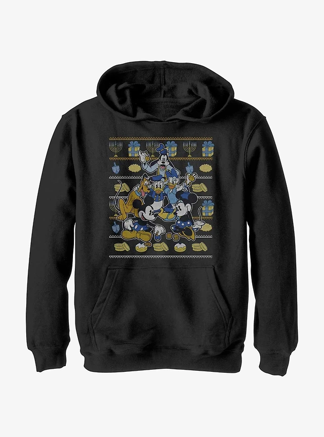 Disney Mickey Mouse Hanukkah Ugly Sweater Youth Hoodie