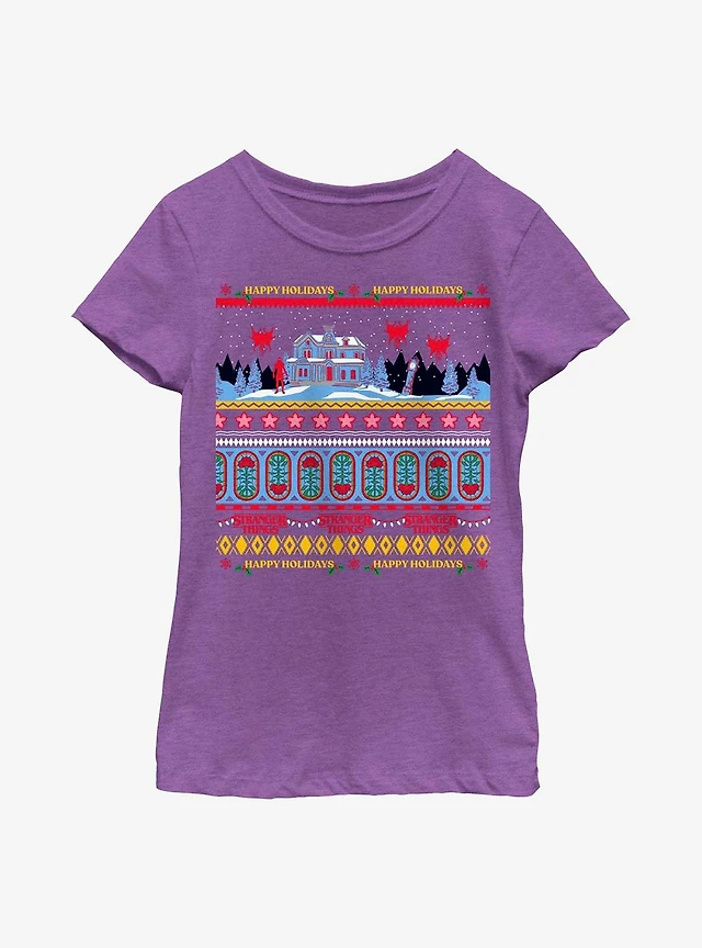 Stranger Things Surfer Boy Pizza Ugly Sweater Youth Girls T-Shirt