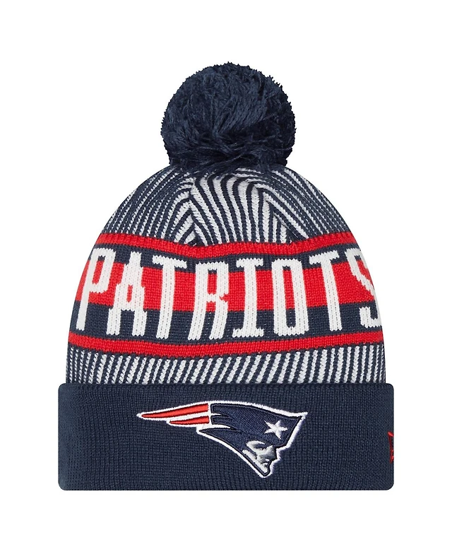 New Era Big Boys and Girls Navy New England Patriots Striped Cuffed Knit Hat with Pom