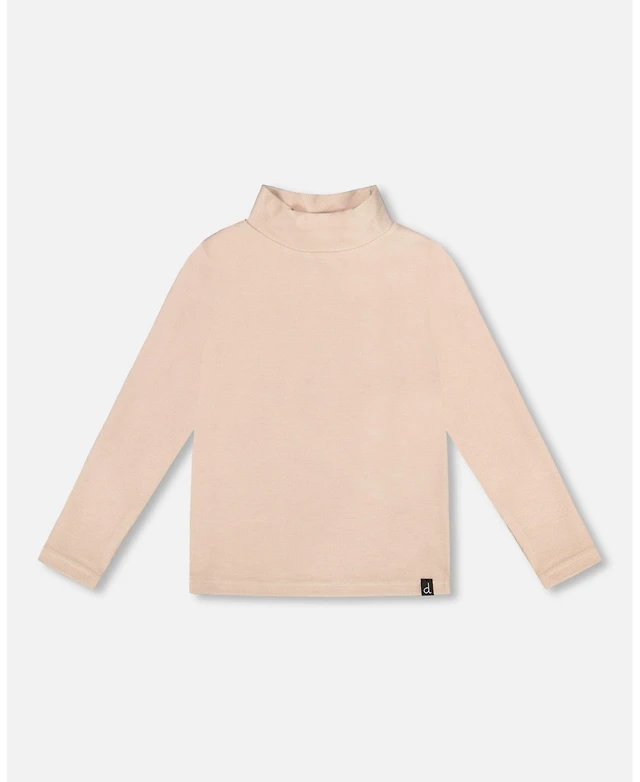 Deux par Girl Super Soft Ribbed Mock Neck Top Light Caramel - Child