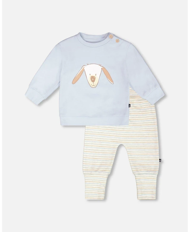 Deux par Baby Boy Cotton Pant and Top Set Light Blue