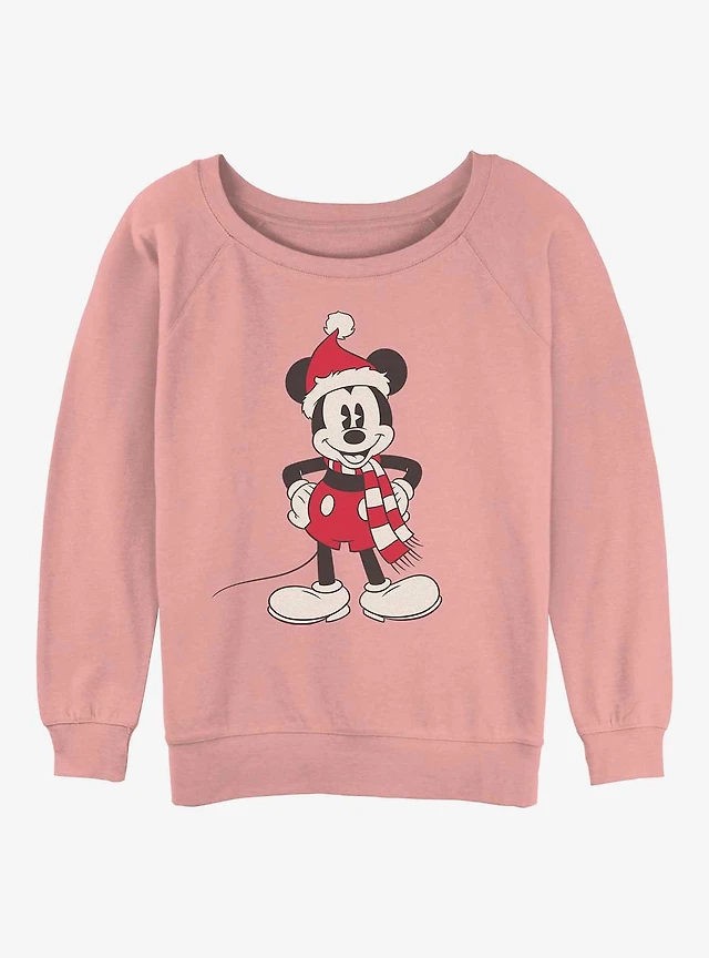 Disney Mickey Mouse Santa Hat Girls Slouchy Sweatshirt