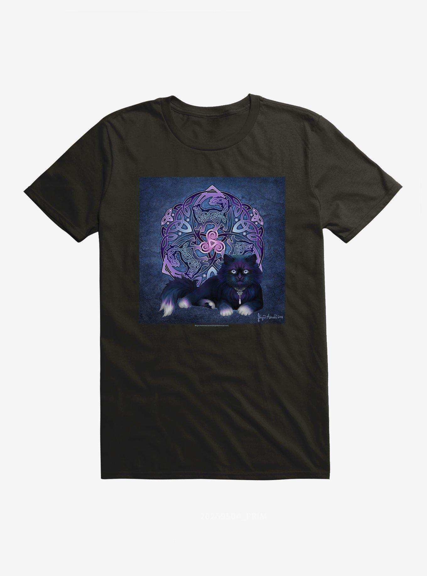 Celtic Black Fluffy Cat Girls T-Shirt by Brigid Ashwood