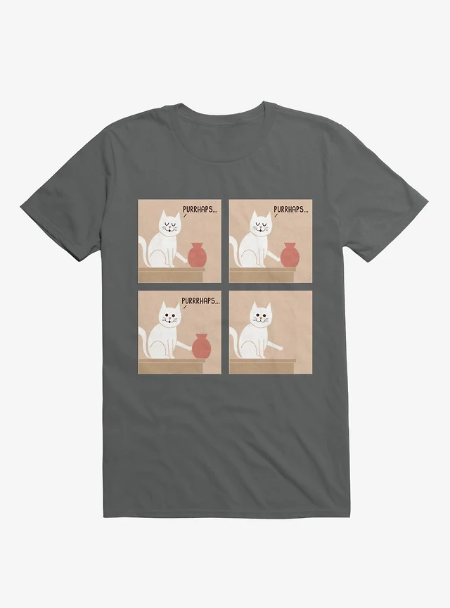 Purrhaps... Mischievous Cat Charcoal Grey T-Shirt