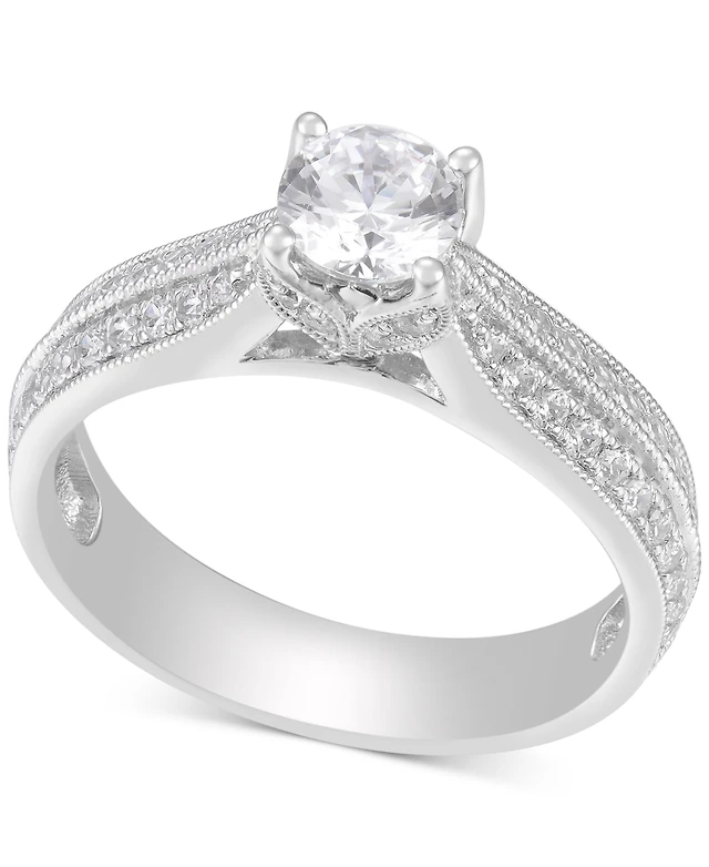 Suzy Levian New York Sterling Silver Cubic Zirconia Cluster Bridal Engagement Ring