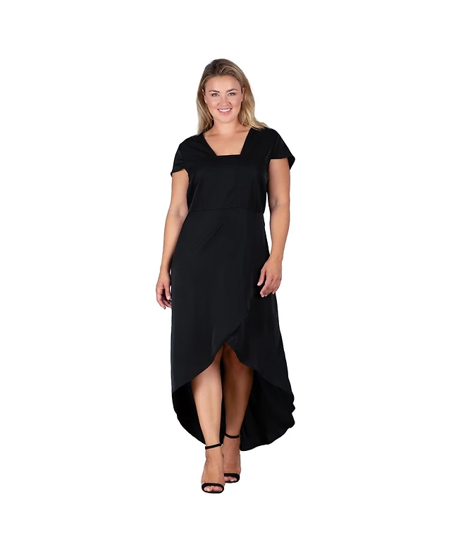 24seven Comfort Apparel Plus Abstract Cap Sleeve Pocket Dress