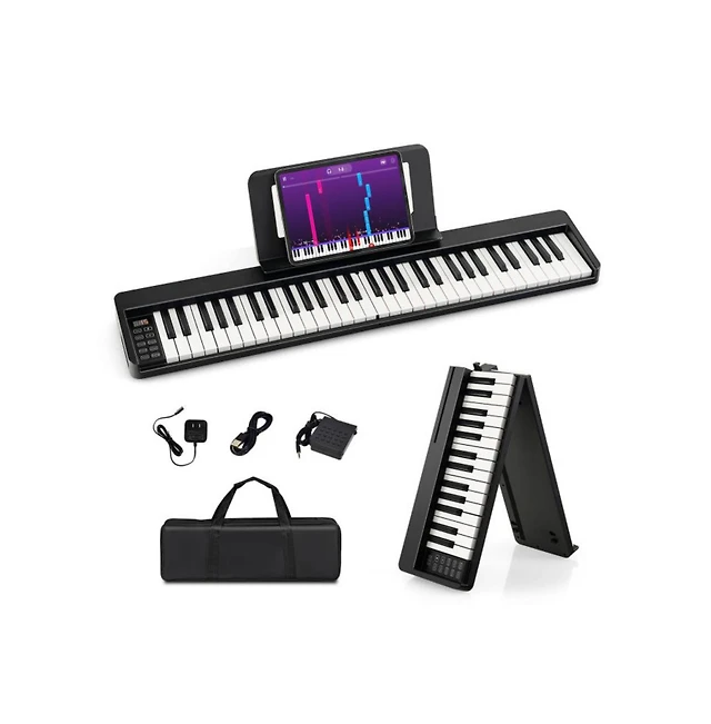Vebreda 61-Key Folding Piano Keyboard with Full Size Keys and Music Stand-Black