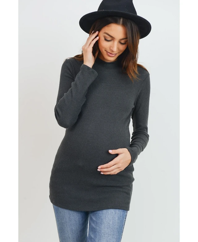 Hello Miz Maternity Mock Neck Long Sleeve Ribbed Top