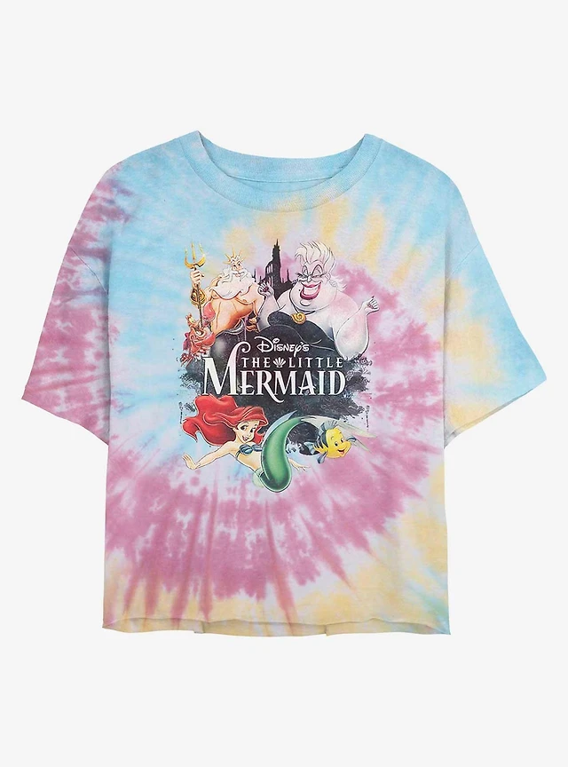 Disney The Little Mermaid Watercolor Poster Tie Dye Crop Girls T-Shirt