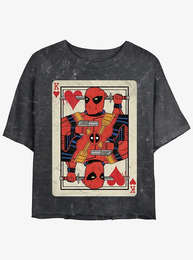 Marvel Deadpool King Of Hearts Card Womens Tie-Dye Crop T-Shirt