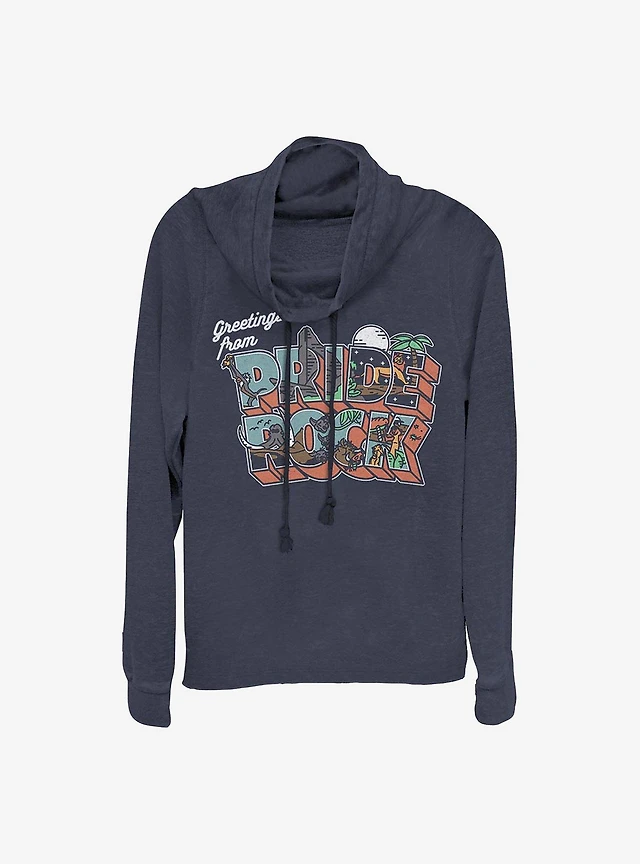 Disney The Lion King Greetings From Pride Rock Cowl Neck Long-Sleeve Womens Top