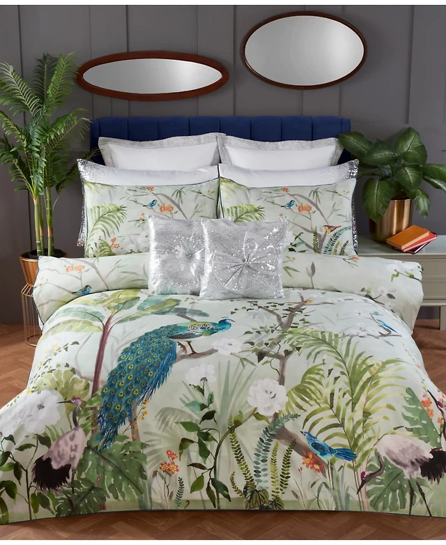 By Caprice Home 100% Cotton Lotus Flower Print Duvet Cover Set With Matching Pillow Cases King