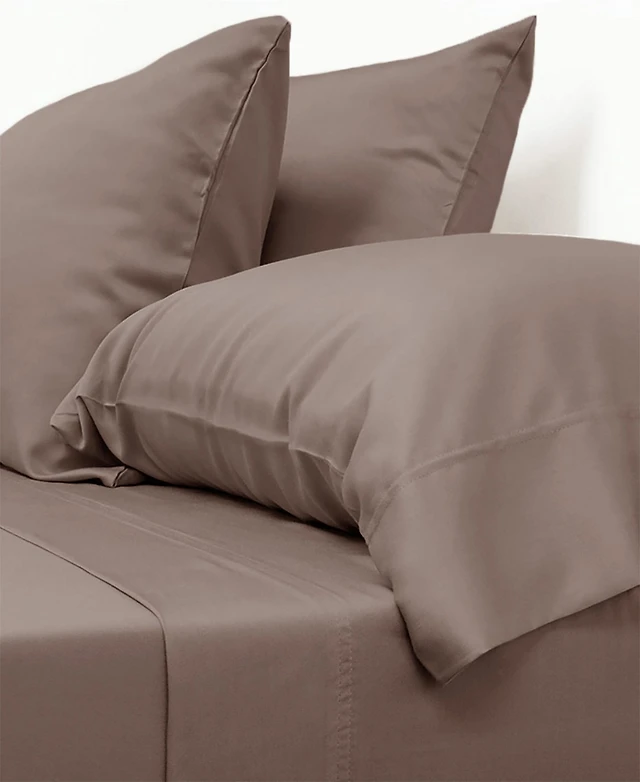Aston and Arden Sateen California King Sheet Set, 1 Flat Sheet, 1 Fitted Sheet, 2 Pillowcases, 600 Thread Count, Sateen Cotton, Pristine White with Fi