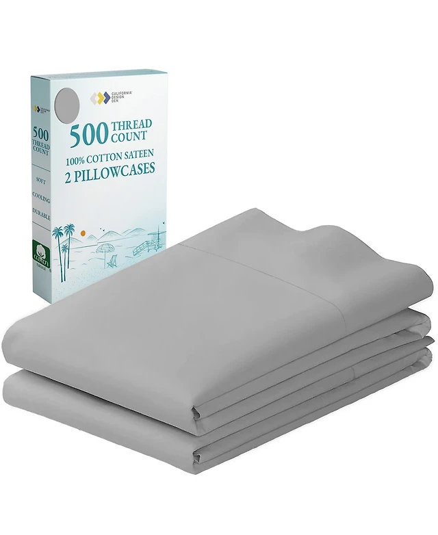 100% Organic Cotton Pillow Cases King Set Of 2, Soft & Cooling Percale Weave Pillowcases with envelope closure by California Design Den