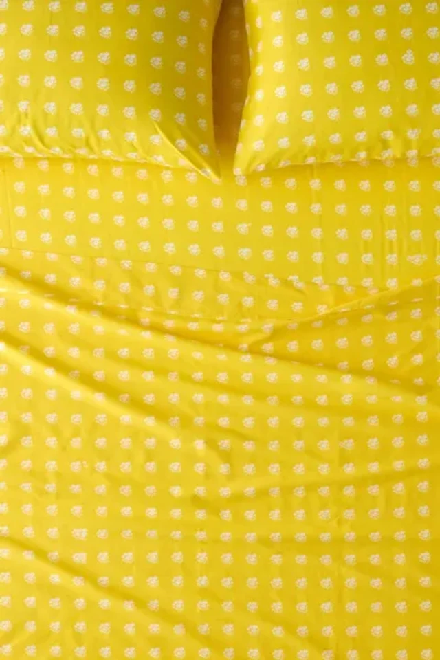 Posies On Yellow Brushed Cotton Sheet Set