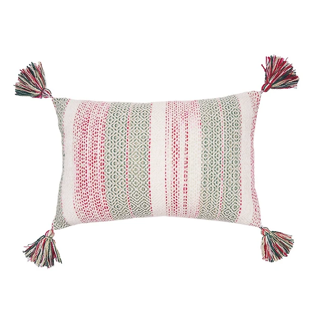 Rose Tree Bird Paradise Woven Checks Boudoir Dec Pillow, 20"x12"