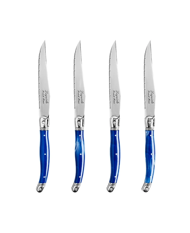 Wolfgang Puck 6-Piece Stainless Steel Knife Set with Knife Block Carbon Stainless Steel Blades and Ergonomic Handles Blonde Wood Block with Acrylic Sa