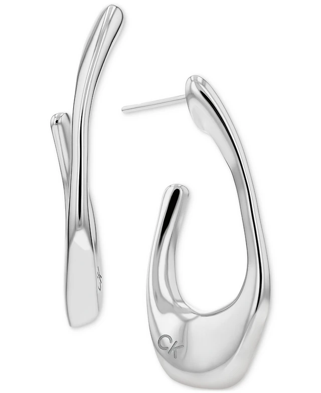 Calvin Klein Stainless Steel Logo Elongated Hoop Earrings