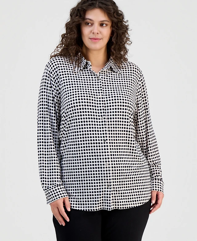 Anne Klein Plus Keyhole-Front Printed Blouse