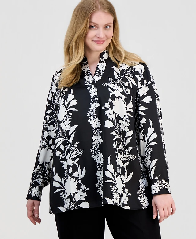 Anne Klein Women's Floral-Print Button-Front Blouse