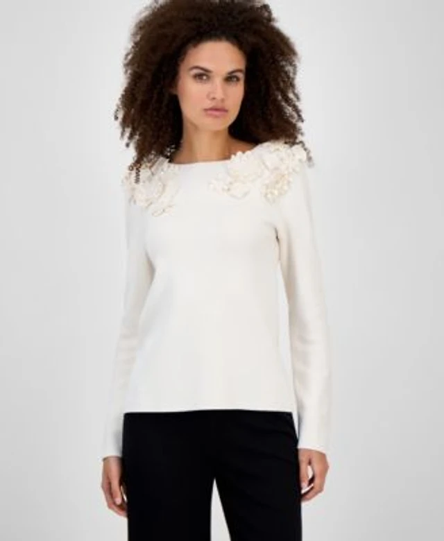 Anne Klein Women's Textured Split-Neck Long-Sleeve Top