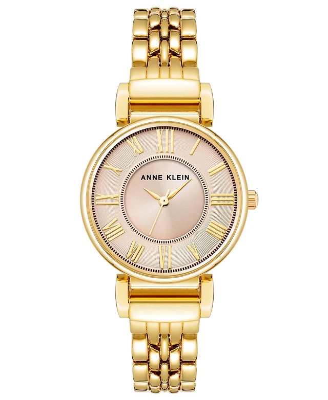 Anne Klein Women's Three Hand Quartz Round Gold-Tone Alloy Link Bracelet Watch, 30mm