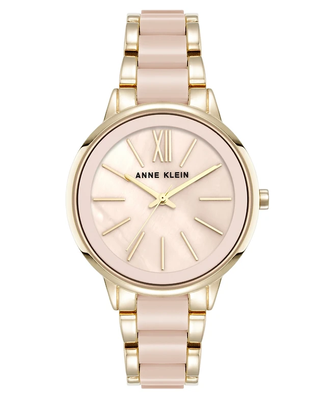 Anne Klein Women's Quartz Gold-Tone Alloy Link and Mother of Pearl Bracelet Watch, 30mm
