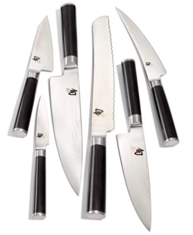 Wolfgang Puck 6-Piece Stainless Steel Knife Set with Knife Block Carbon Stainless Steel Blades and Ergonomic Handles Blonde Wood Block with Acrylic Sa