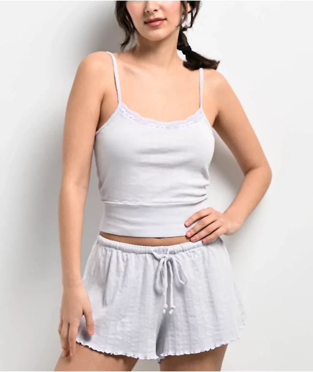 Shaka Wear Heather White Crop Crewneck Sweatshirt