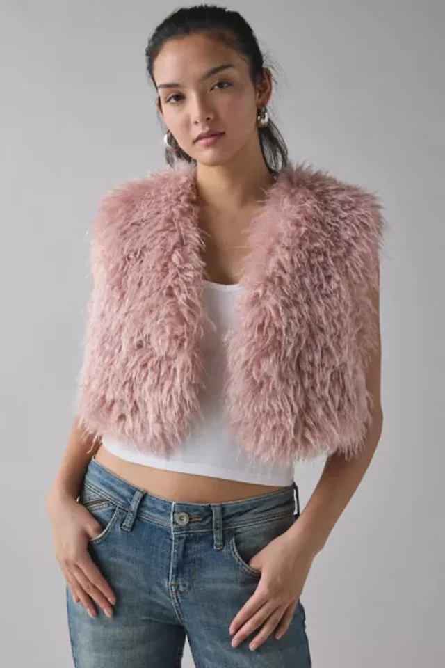 Azalea Wang Camille Cropped Blush Faux Fur Vest