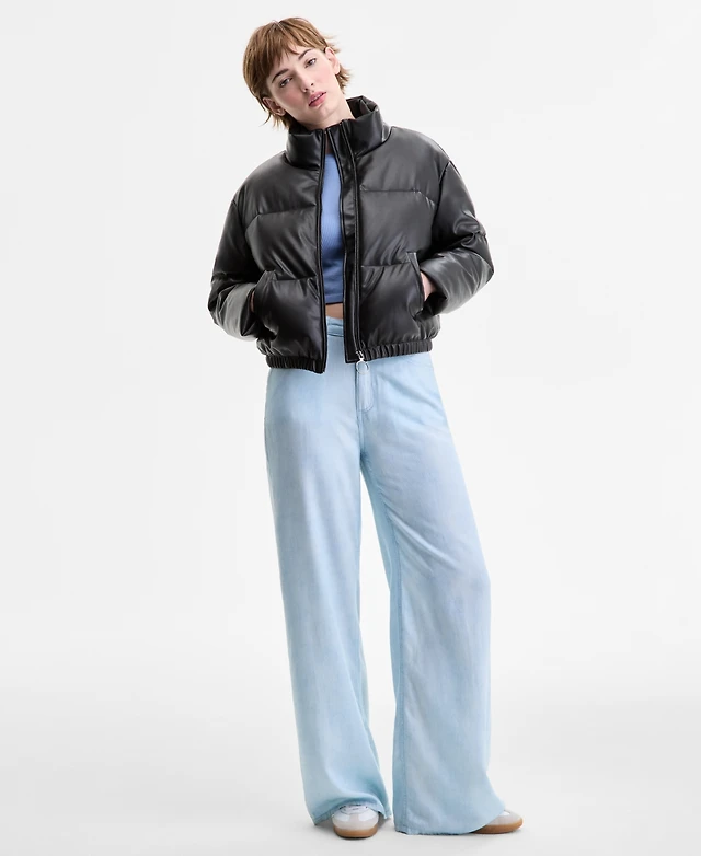 CoffeeShop Juniors' Cropped Faux-Leather Puffer Coat