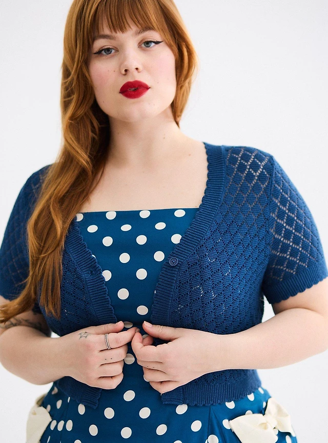 Hooked Up Trendy Plus Pointelle Tie-Front Cardigan