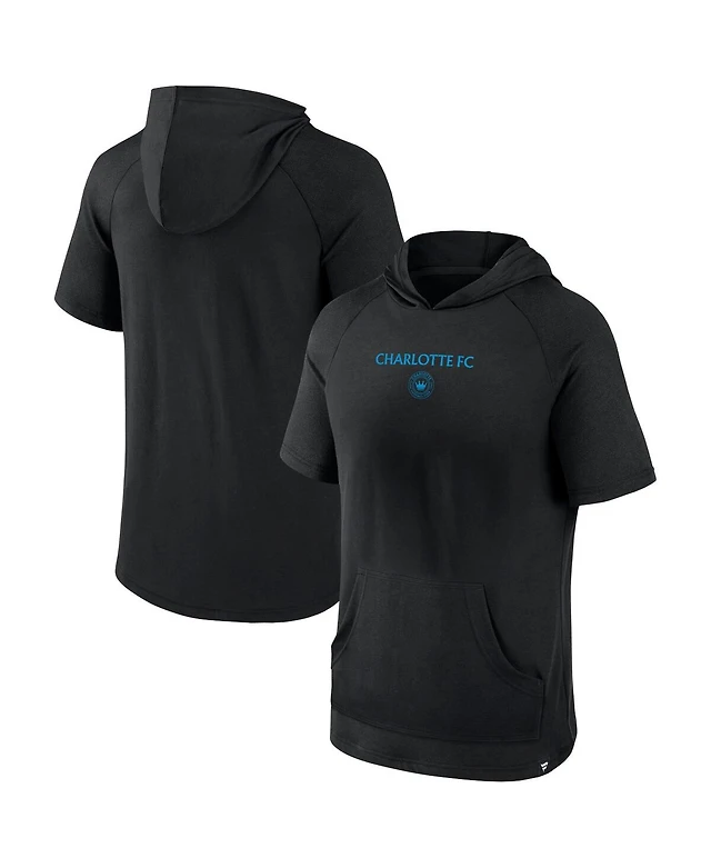 Fanatics Men's Black Charlotte Fc Match Raglan Short Sleeve Pullover Hoodie