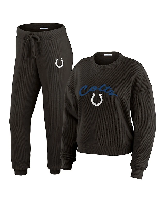 Wear by Erin Andrews Women's 2-Piece Cream Indianapolis Colts Plus Size Knitted Tri-Blend Long Sleeve T-Shirt and Pants Lounge Set