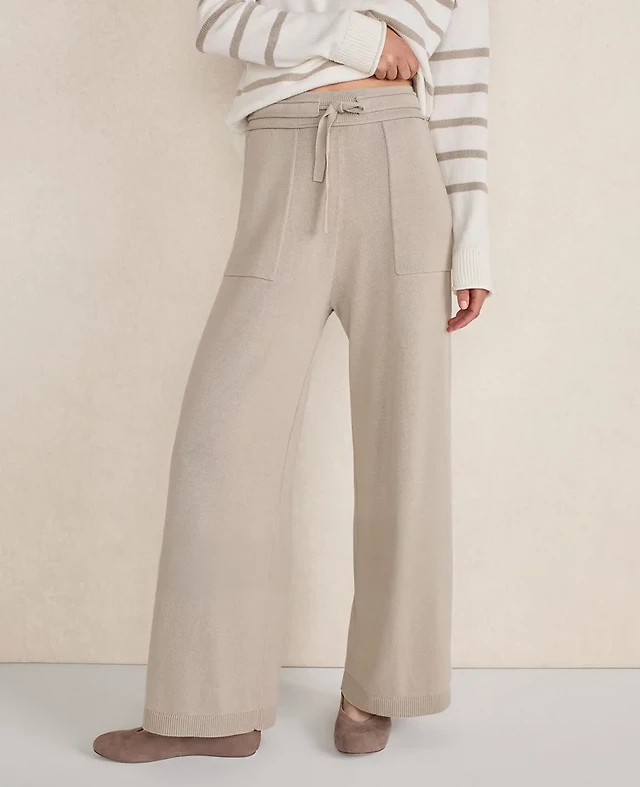 Baby Girl Wide-Leg Sweater Knit Pants - Ivory