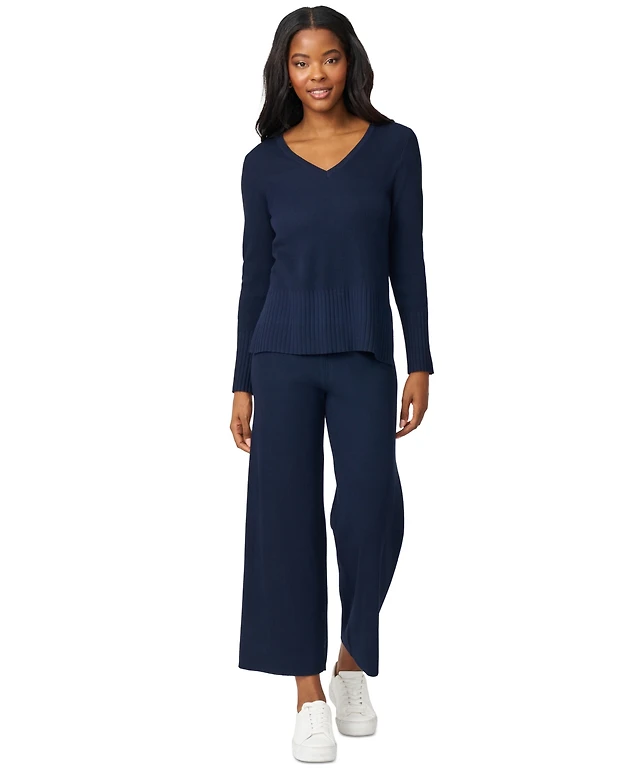 Melissa Paige Petite Ribbed-Knit V-Neck Tunic & Pant Sweater Set