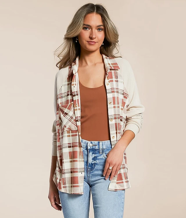 Boys Plaid Luxe Cozy Knit Button Up Shirt