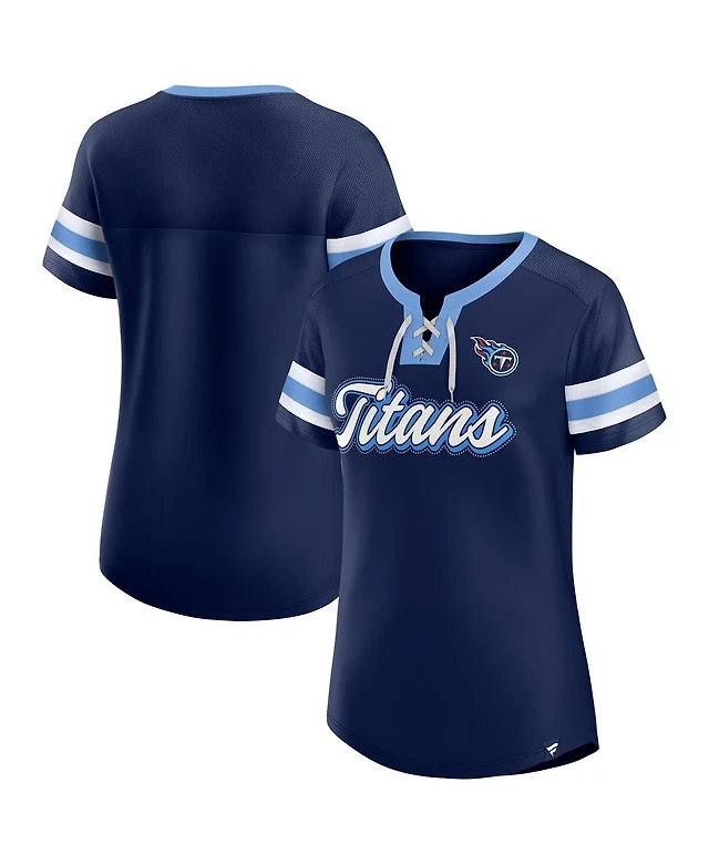 Fanatics Women's Navy Tennessee Titans True Catch Iconic Rhinestone Bling Athena Lace-Up T-Shirt