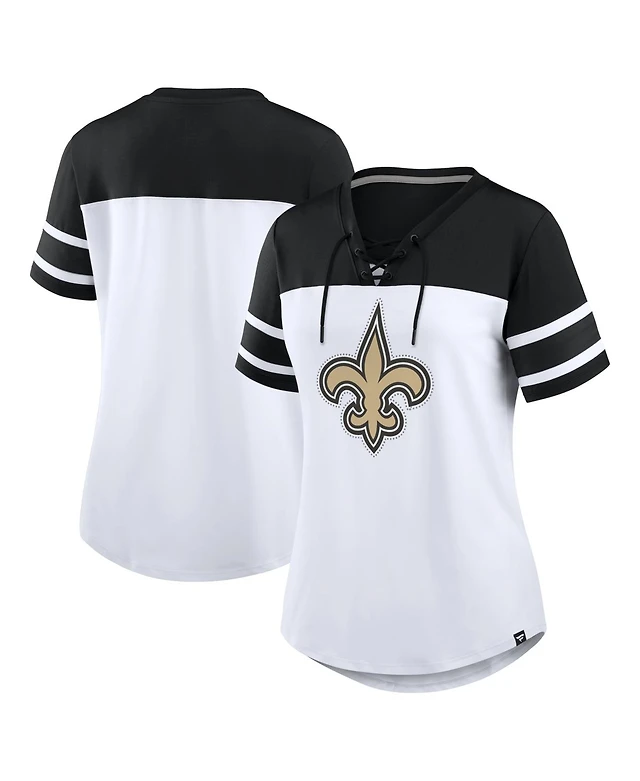 Fanatics Women's White/Black New Orleans Saints Athena Rhinestone Lace-Up V-Neck T-Shirt