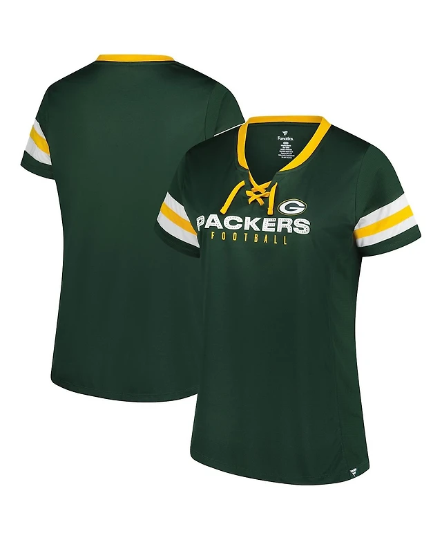 Fanatics Women's Green Bay Packers Plus Rhinestone Redzone Athena Lace-Up Notch Neck T-Shirt