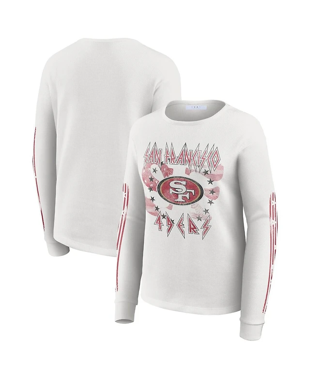 Wear by Erin Andrews Women's White San Francisco 49ers Graphic Waffle Long-Sleeve T-Shirt