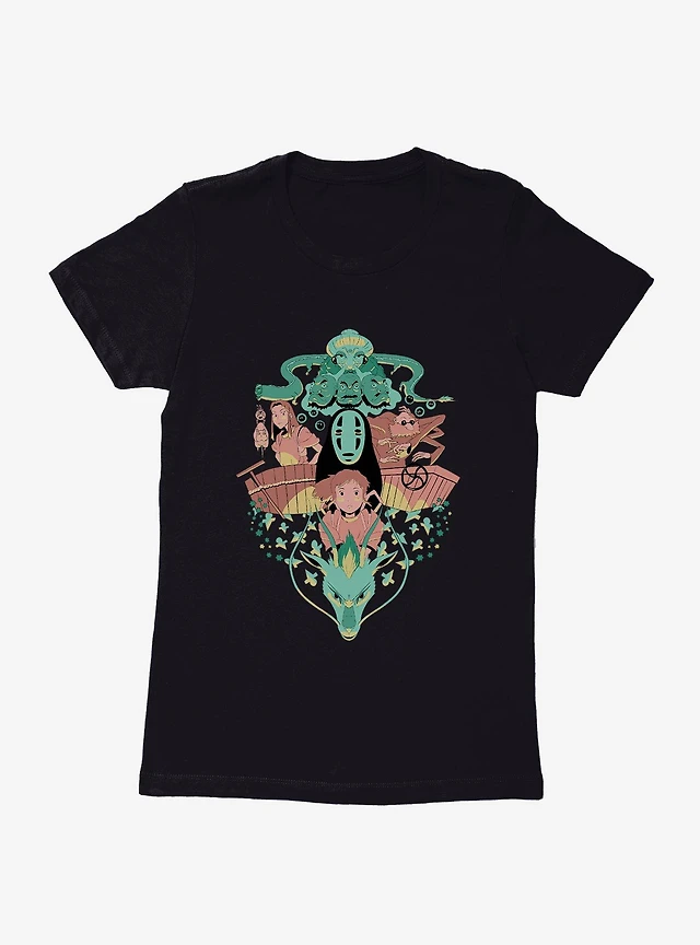 Studio Ghibli Spirited Away Chihiro And No Face Group Crest Womens T-Shirt