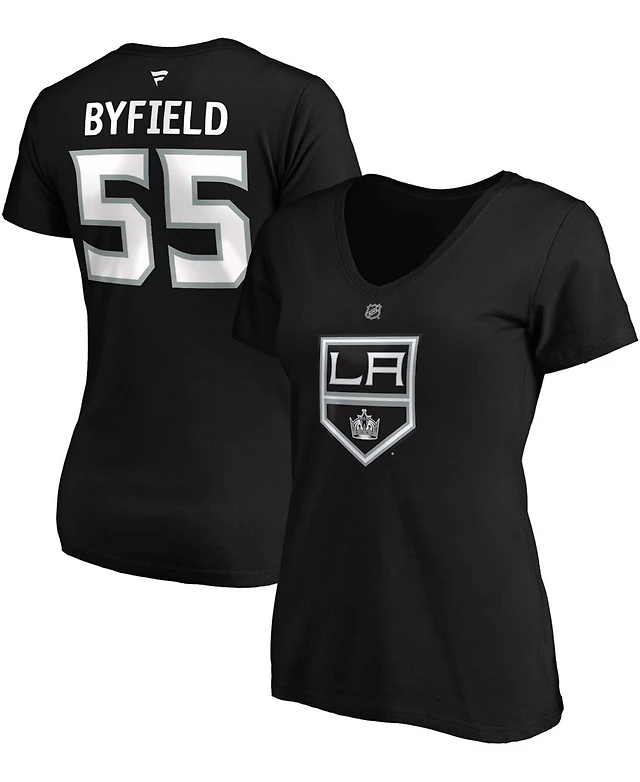 Women's Quinton Byfield Black Los Angeles Kings Authentic Stack Name and Number V-Neck T-shirt