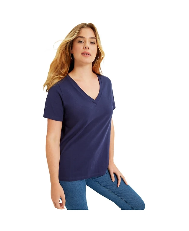 Jm Collection Women's Printed Short-Sleeve Satin-Trim Top, Exclusively at Macy's
