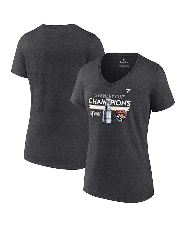 Fanatics Women's Heather Gray Florida Panthers 2024 Stanley Cup Final Plus V-Neck Roster T-Shirt