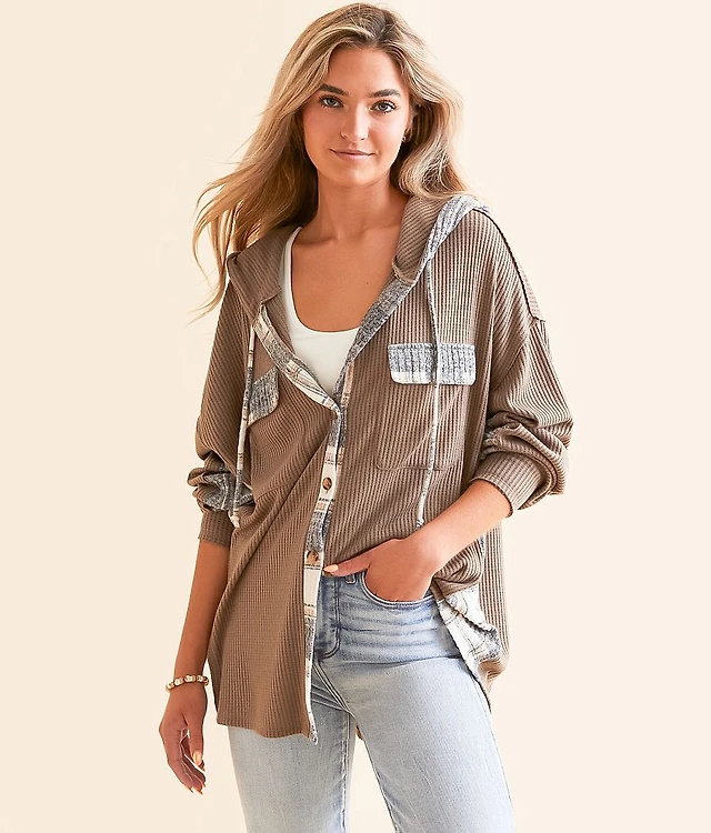 Brushed Rib Knit Oversized Boyfriend Shirt