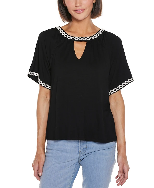 Jm Collection Women's V-Neck Short Sleeve Knit Top, Exclusively at Macy's