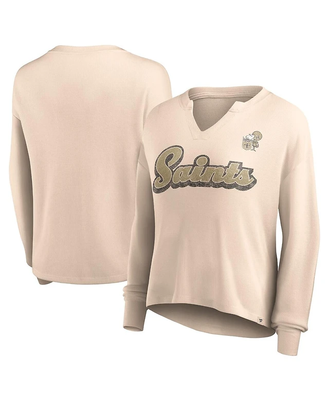 Women's Fanatics Tan Distressed New Orleans Saints Go For It Notch Neck Waffle Knit Long Sleeve T-shirt