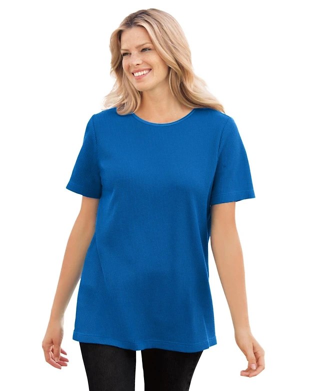 Liverpool Los Angeles Petite Crewneck Knit-To-Woven Top