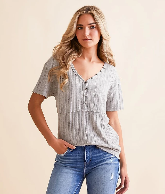 Ann Taylor Petaled Mixed Media T-Shirt Sands Edge Women's